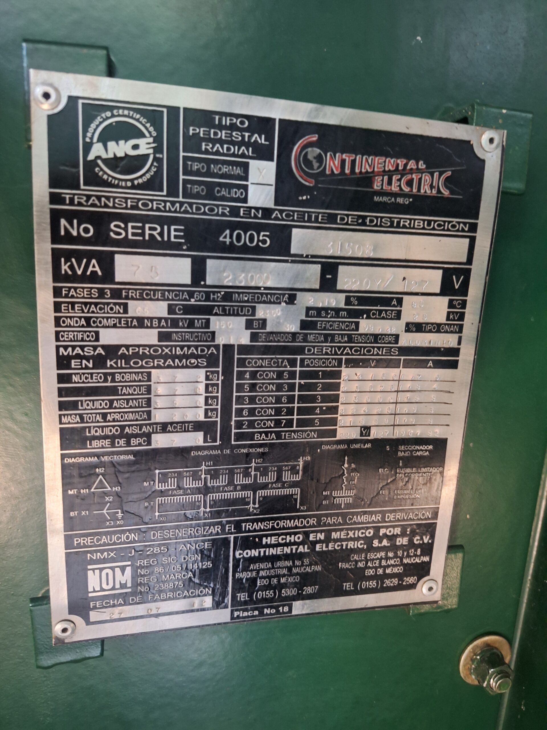 Voltaje Primario: 23000 V.