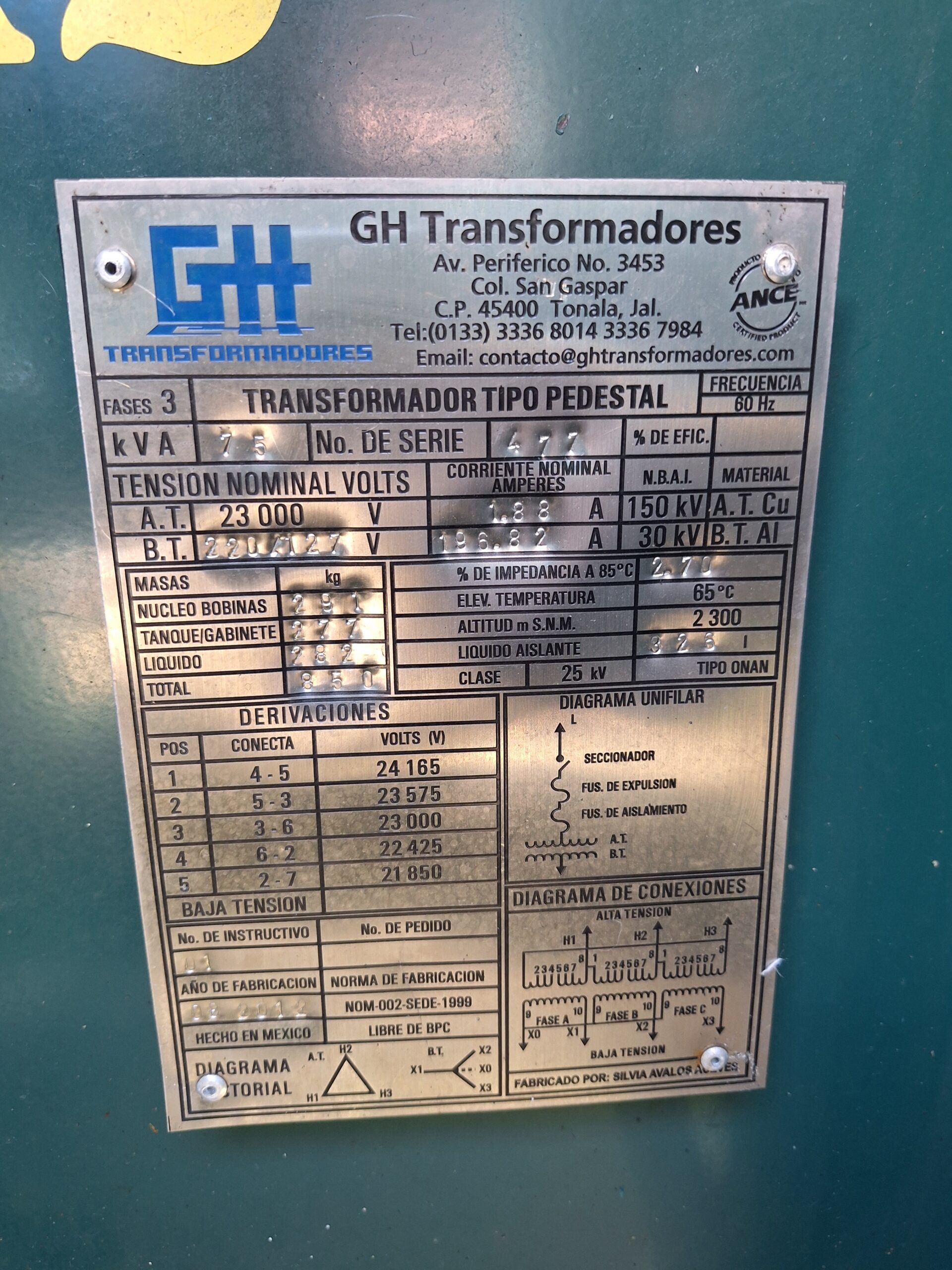 Voltaje Primario: 23000 V.